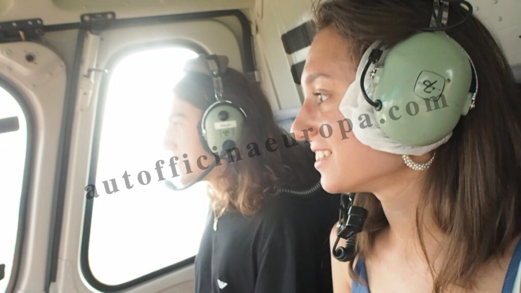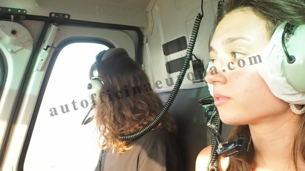 Collaudatori ufficiali Autofficina Europa in partenza su elicottero per eseguire un test drive oltreconfine